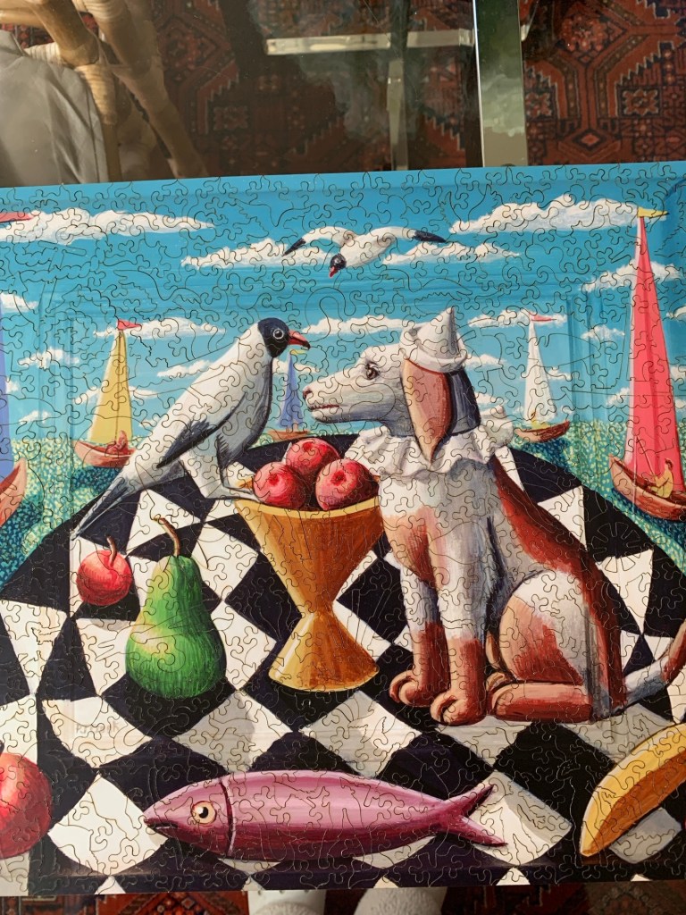 We, the puzzlers, being the caregivers and me, take turns working the puzzle as we wait for Matt to wake up in the morning or from a nap during the day