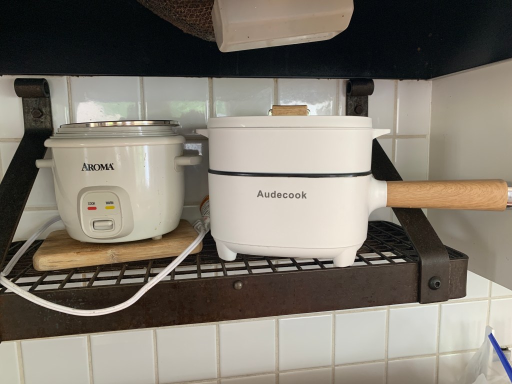 Between the rice cooker being able to cook oatmeal, quinoa, farrow, anything that requires water and heat and the electric skillet that cooks eggs, meat, pretty much anything you would put in a pan, we have been able to still cook what we need for the daily meal